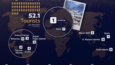 Business & Finance2 Min Read Nine9cronAugust 25, 2025 Where Tourists Outnumber Locals Where Tourists Outnumber Locals The data for this map comes from UN Tourism. It compares the number of annual tourist arrivals with resident…