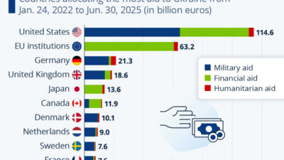 Business & Finance1 Min Read Nine9cronAugust 18, 2025 The US Has Given Ukraine The Most Aid To Date The US Has Given Ukraine The Most Aid To Date To date, the United States has been the biggest supporter of Ukraine in terms of aid, according…