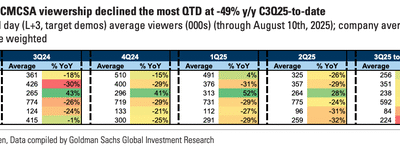 Business & Finance2 Min Read Nine9cronAugust 13, 2025 Audience Erosion Accelerates Across Traditional TV Audience Erosion Accelerates Across Traditional TV Building on UBS’ note to clients last month, which flagged an inflection point as…