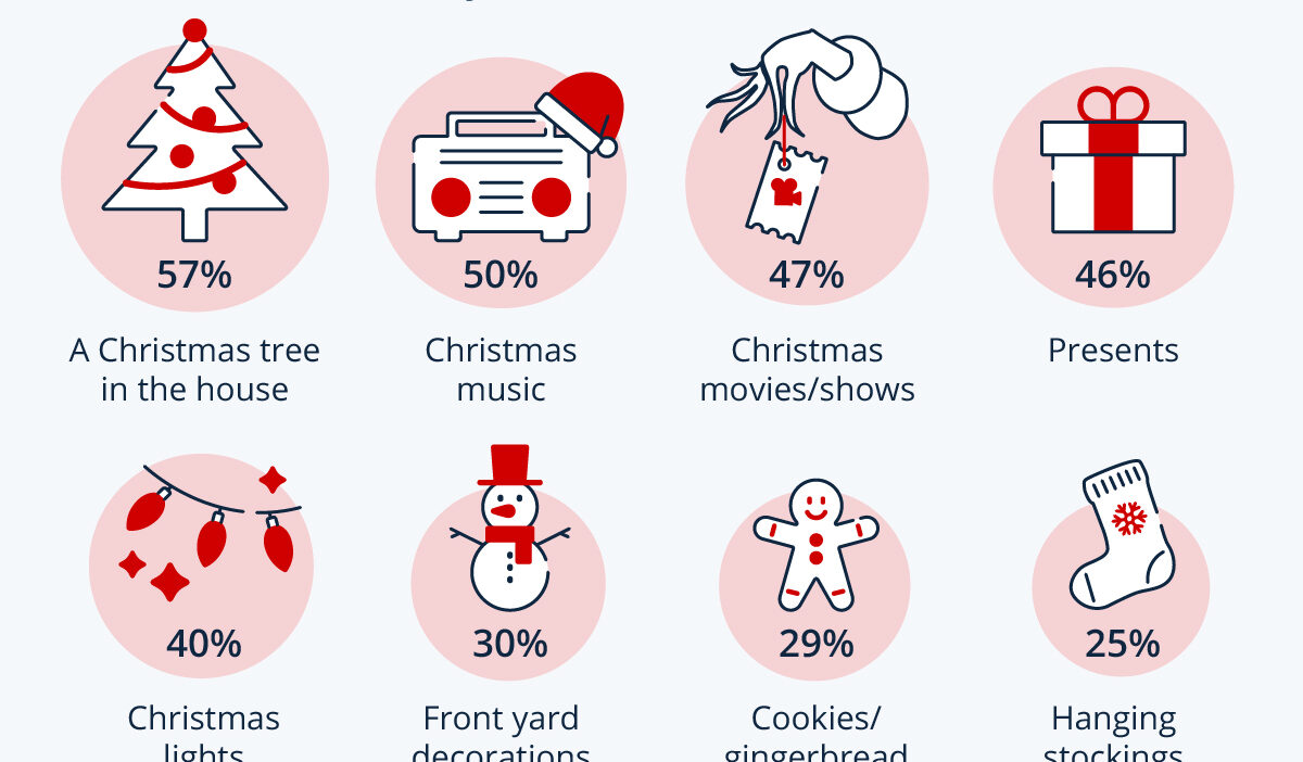 As Statista’s Felix Richter reports, according to Statista Consumer Insights, a Christmas tree in the house tops the list of holiday must-haves this year, with 57 percent of Americans considering it essential to a proper celebration.