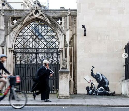 Popular artist Banksy created a graffiti mural in London depicting the current state of the UK censorship system using the courts to trample the rights of British citizens…