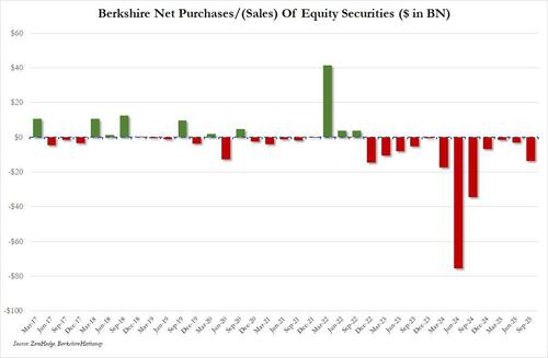 With less than two months left until the Berkshire Hathway becomes just another company after the 95-year-old Warren Buffett exits as CEO at the end of the year, there is still some (waning) interest in what this massive long only fund with a record $382 billion in cash, is buying and selling, or as we recently discussed, mostly selling. Which is why today’s 13F deadline is usually a reason for the Berkshire faithful to promptly check out the company’s latest stock holdings on Edgar.com.
