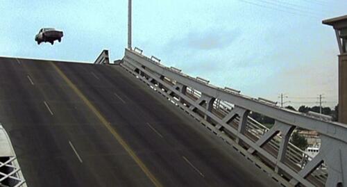 With a five-foot gap separating the south and north ends, the car launched over the drop, a stunt that might have looked choreographed for the big screen rather than unfolding in real life.