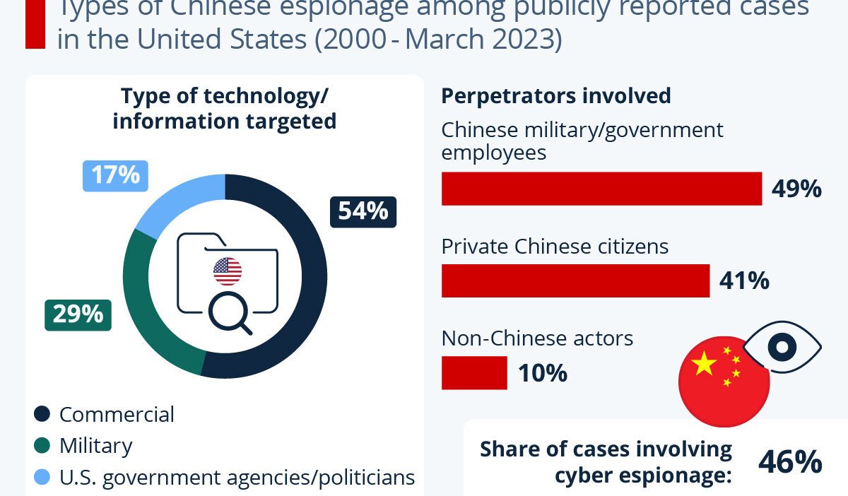 In fact, 54 percent of cases involved spying on military installations and technology, like in the case of two Chinese citizens residing in Oregon, who were accused in the summer of having spied on the U.S. Navy.