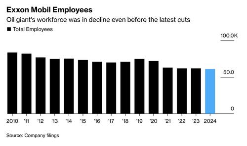 Bloomberg writes that Exxon received attention Monday when Imperial Oil Ltd. — nearly 70% owned by Exxon — disclosed it would reduce its workforce by 20%. Combined, the moves highlight a sweeping restructuring effort that Woods has pursued since 2019 to simplify Exxon’s sprawling global footprint, a legacy of its merger with Mobil two decades ago.