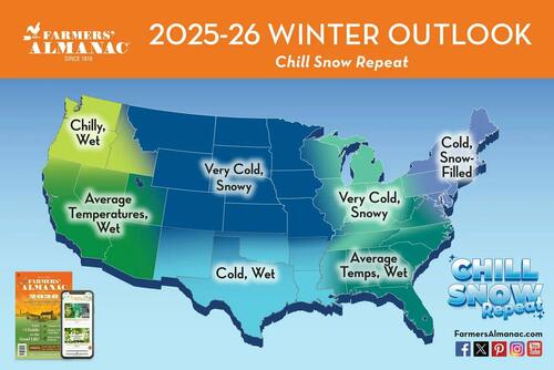 The forecast, which dates back to 1818 and accounts for environmental fluctuations on Earth, solar activity (sunspots), the motion of the Moon, and other proprietary factors, calls for “widespread wintry weather” in the 2025–26 winter season.