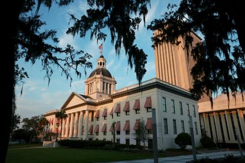 The Florida Historic Capitol sits near the 22-story New Capitol building, which together are part of the Capitol Complex in Tallahassee, Fla., on July 26, 2023. Joe Raedle/Getty Images