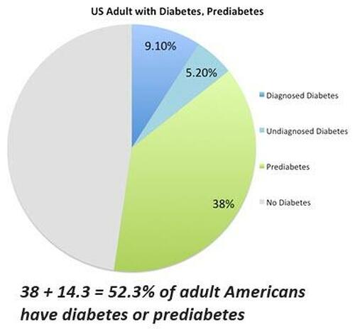 Fast-forward to today, and the average lifespan is 80 (with millions of elderly living a decade longer) and 3/4 of adult Americans are at risk of lifestyle diseases / metabolic disorders due to an unhealthy diet and poor fitness. Over half of Americans are diabetic or prediabetic.