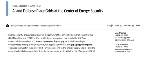 On the commodity side, the analysts pointed out that with AI and defense putting the power grid at the center of energy security, the urgent need for grid upgrades is turning copper into the new oil.