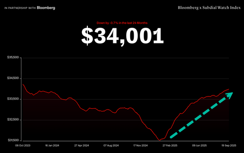 The Bloomberg Subdial Watch Index, which tracks prices for the 50 most-traded watches by value on the secondary market, bottomed in late January and has since been rising in a “V-shaped” fashion, rebounding from a low of $31,535 to $34,001 as of last Thursday, or about a 7.8% increase from the trough.
