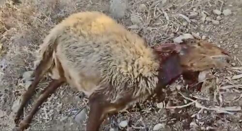 One of more than 100 sheep slaughtered by settlers seeking to intimidate Bedouins into leaving their land (screen shot from X video)