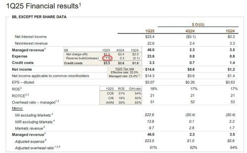 JPMorgan Reports Mixed Q1 Results: Record Trading Revenues As FICC Misses; Credit Reserves Soar
