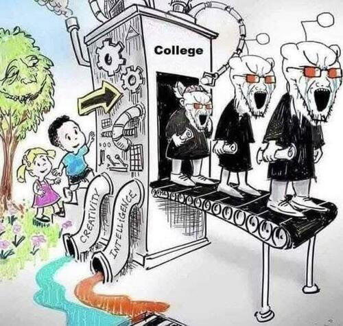 These days, college is a woke indoctrination factory pumping out our purple-haired creatures who are confused about their gender and rave about Marxism.