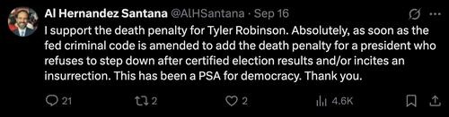 An X account matching the Hernandez-Santana profile contains a series of anti-Trump posts.