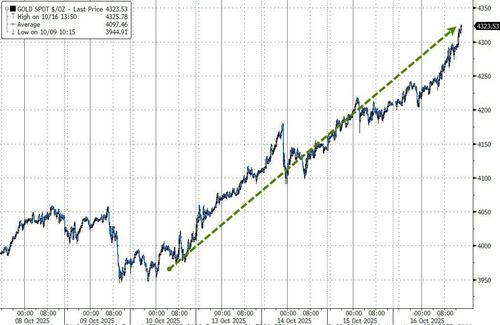 A new round of tariff announcements from the Trump administration sent markets reeling, with gold dropping briefly only to soar back to new record highs above $4300 today, signaling collective doubt in the system itself as investors rush to protect themselves with hard assets.