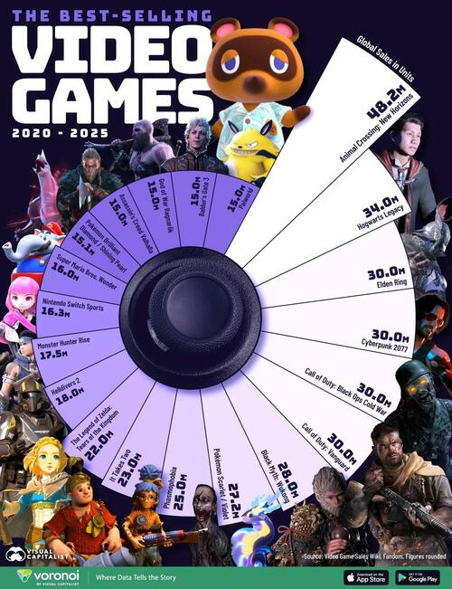This visualization, via Visual Capitalist’s Niccolo Conte, ranks the best-selling video games from 2020 to 2025 based on global unit sales using data from Video Game Sales Wiki (Fandom).