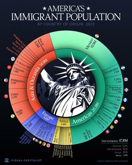 In this visualization, Visual Capitalist’s Marcus Lu breaks down the largest immigrant groups in America by nationality, highlighting the top 10 countries from each region.