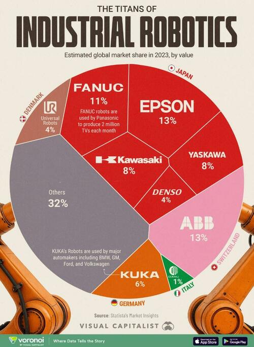 This visualization, via Visual Capitalist’s Bruno Venditti, breaks down the market share of leading industrial robotics manufacturers.