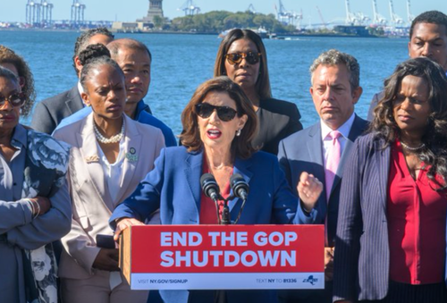 Hochul pointed out that the administration is using culture wars as a pretext for its actions: “Culture wars, over the tens of thousands of jobs that we’ve created, with these infrastructure projects that were literally talked about for decades, that we finally could get moving, create jobs and opportunity and take care of infrastructure challenges that others were too timid to take on in the past.”