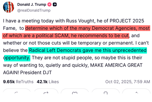 Trump Says Radical Left’s Shutdown Misstep Opens “Unprecedented Opportunity” For Mass Firings Of Fed Workers