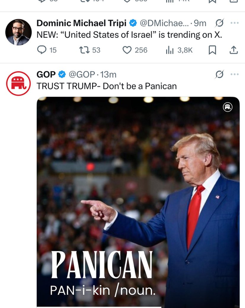“Israel First” is trending on X in the US, with “America Last”. pic.twitter.com/Ci4Uq0KLUg