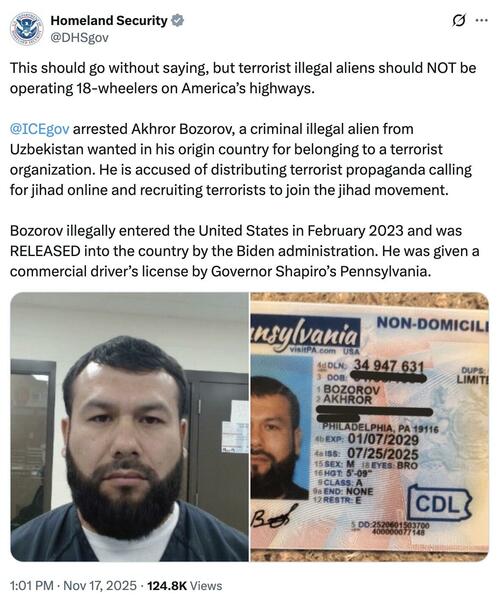 The NY Post writes that authorities say Bozorov had an active warrant in Uzbekistan for belonging to a terrorist group, recruiting members, and spreading jihadist propaganda online. Despite that, officials said he was granted work authorization in 2024 and then a Pennsylvania commercial license under Gov. Shapiro.