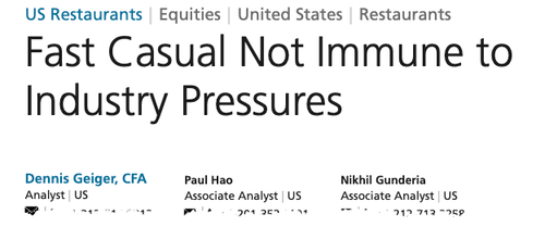 Reading over the “Fast Casual Not Immune to Industry Pressures” note this morning via UBS analyst Dennis Geiger, the view is that restaurant demand is uneven, and while casual dining showed resilience with solid results, fast casual players like CAVA have revised outlooks this year and remain cautious on diners, reflecting broader macroeconomic pressures.