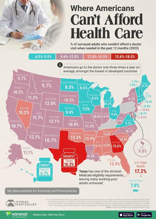 This number comes from Centers for Disease Control and Prevention’s Behavioral Risk Factor Surveillance System (BRFSS) data that lists the share of surveyed adults who skipped seeing a doctor in 2023 because it simply cost too much.