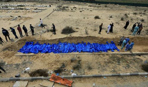 A Palestinian mass grave in southern Gaza: More than 63,000 Palestinians have been killed since Oct. 7, with many more believed to be buried under rubble (Yousef Masoud for New York Times)